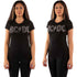 An official licensed AC/DC Ladies Embellished T-Shirt featuring the 'Logo' design motif. This high quality Embellished T-Shirt is available in a black colourway.