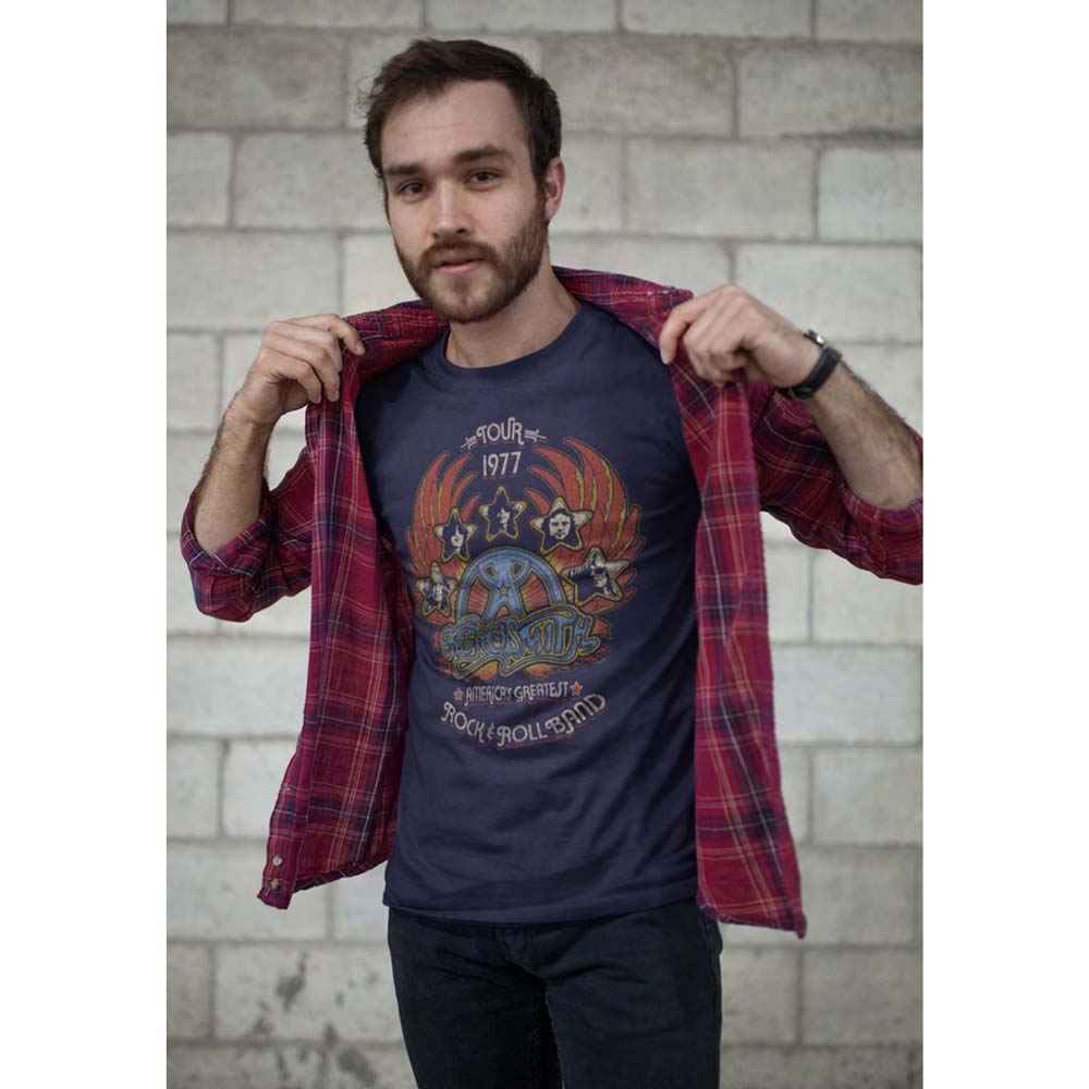 Authentic Aerosmith Design: Featuring iconic and classic artwork, this T-shirt captures the essence of Aerosmith's legendary style. Stand out with a design that pays homage to their incredible musical legacy.