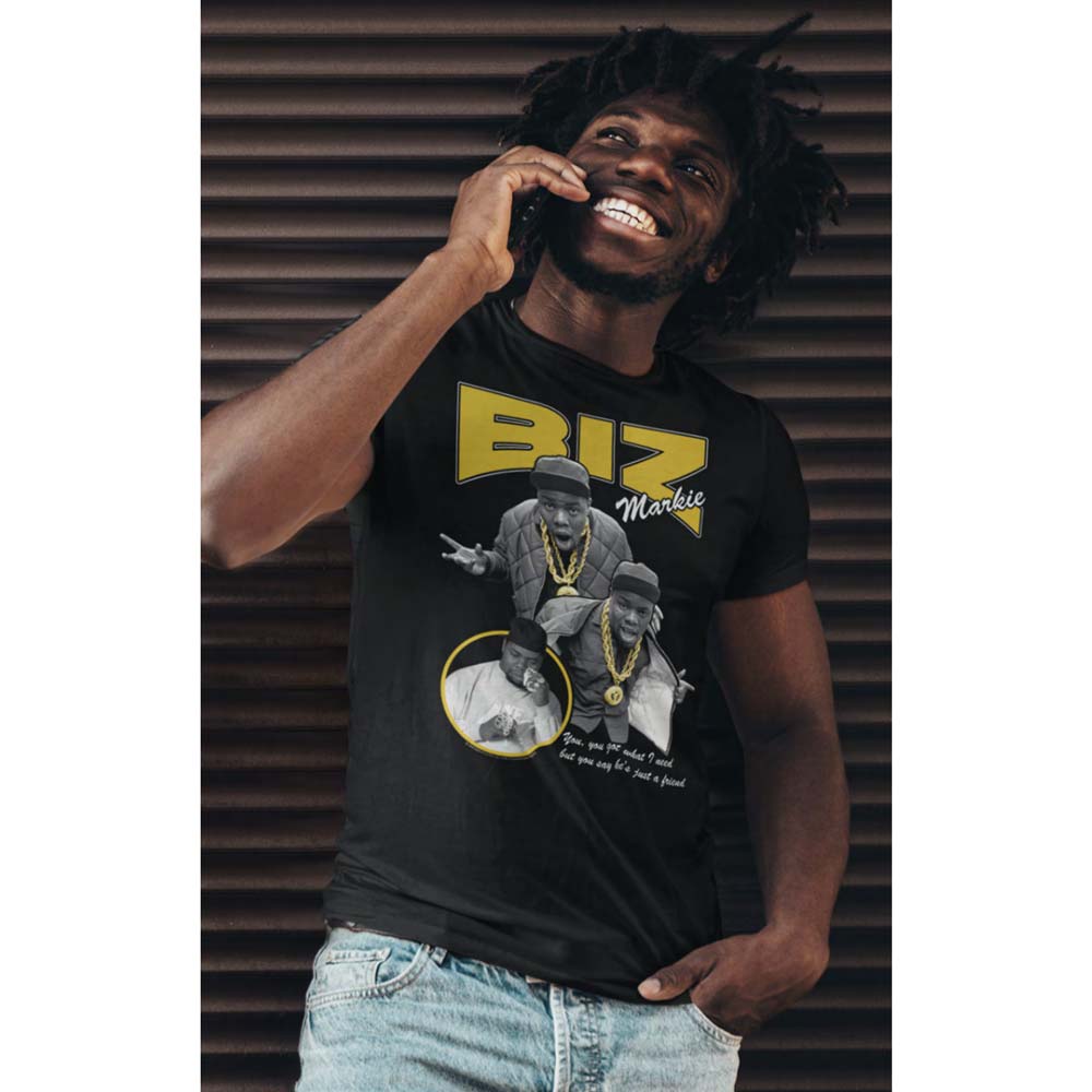Upgrade your wardrobe and pay homage to the legendary Biz Markie with this stylish and officially licensed T-shirt.