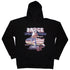 High quality black unisex pullover hoodie featuring front printed design motif.