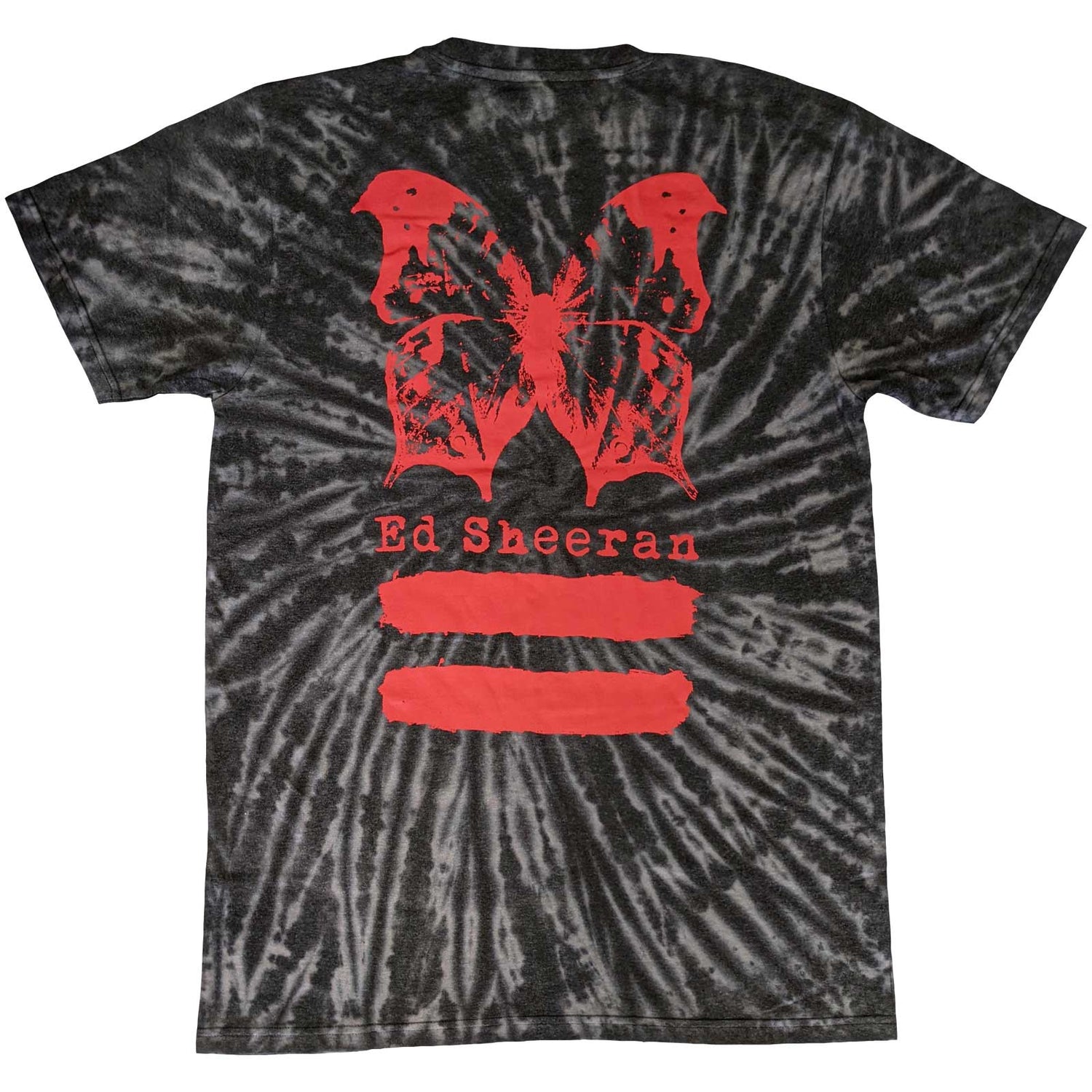 An official licensed Ed Sheeran Unisex T-Shirt featuring the 'Red Equals Butterfly' design motif. This high quality T-Shirt is available in a black colourway.