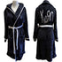 This luxury and exclusive bathrobe has two pockets and feature design motifs to both the left breast and garment back.