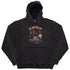 High quality black unisex pullover hoodie featuring front printed design motif.