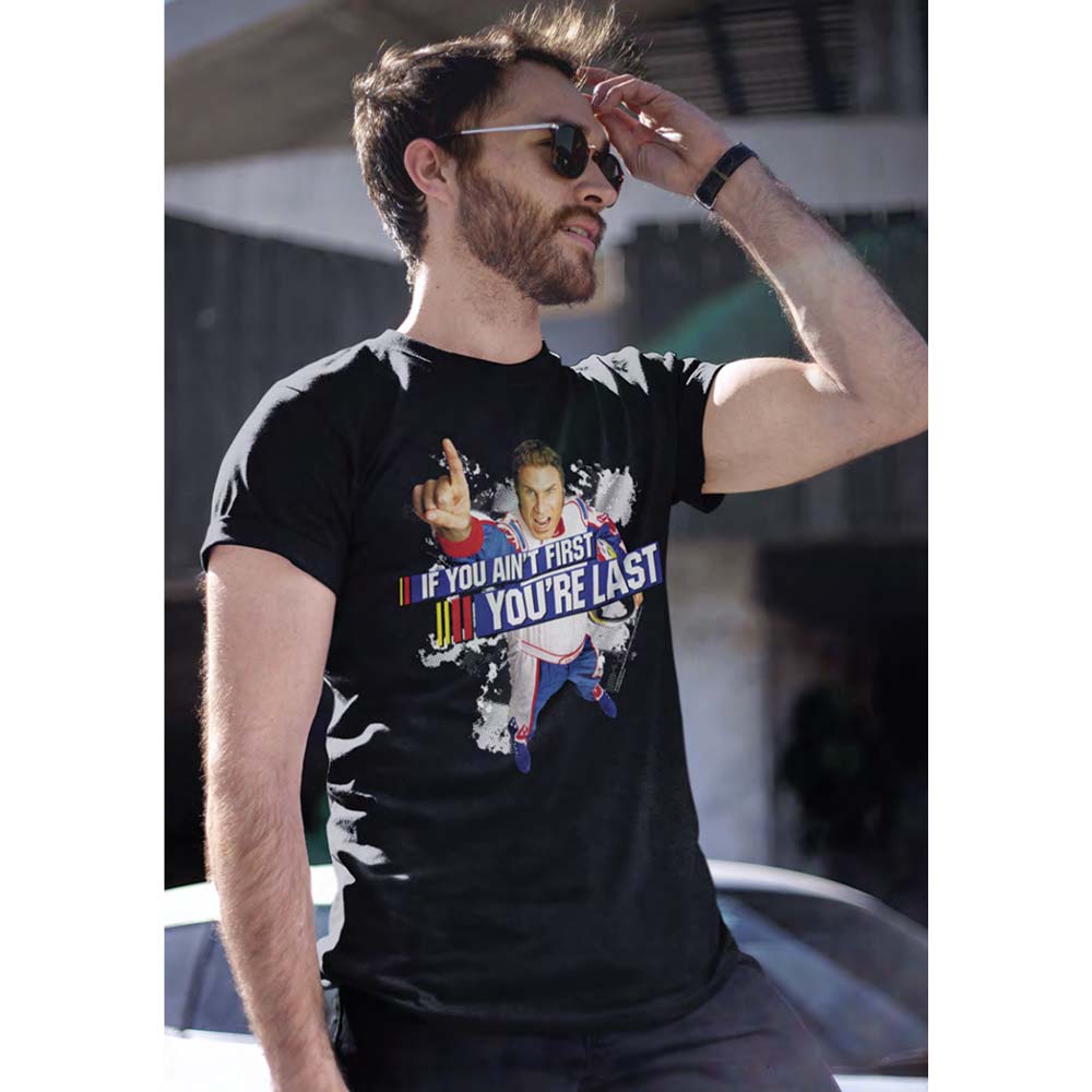 Join the pack of 'Talladega Nights' fans and keep Ricky Bobby's legendary spirit alive with this officially licensed T-shirt. Remember, if you're not first, you're last, so don't miss out on owning this piece of movie history!"