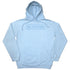 High quality light blue unisex pullover hoodie featuring front printed design motif. With drawstring hood and kangaroo style pouch pockets.