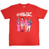 An official licensed Gorillaz Unisex T-Shirt featuring the 'Cracker Island Standing Group' design motif. This high quality T-Shirt is available in a red colourway.
