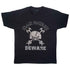 An official licensed Iron Maiden Kids Tee featuring the 'Beware' design motif. This high quality t-shirt design is available in the black colourway.