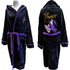 Material: Black super soft fleece hooded robe with contrasting red piping & belt.