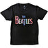 An official licensed The Beatles Unisex T-Shirt featuring the 'Floral Logo' design motif. This high quality T-Shirt is available in a black colorway.