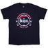 An official licensed The Beatles Unisex T-Shirt featuring the 'Magical Mystery Tour Album Cover' design motif. This high quality T-Shirt is available in a navy blue colorway.